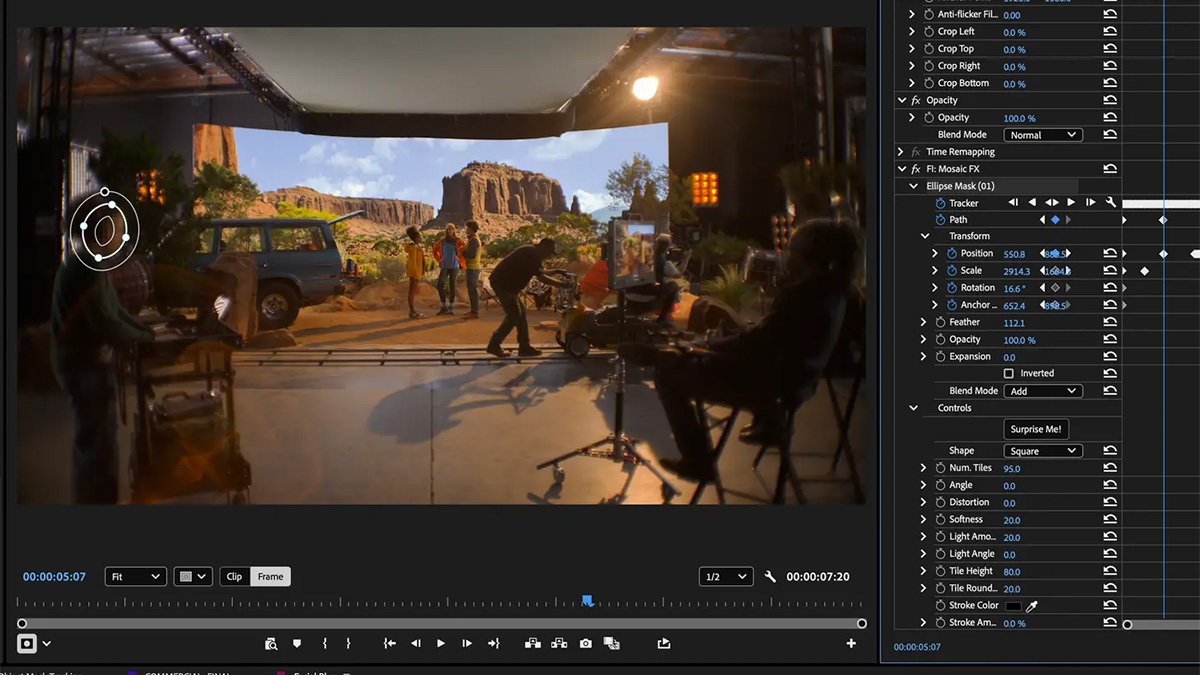 Shape Masks have been updated and improved in the latest version of Premiere. Adobe has redesigned the Ellipse, Rectangle, and Pen masks to give you more creative control. You can also work with effects to blur faces or relight parts of your image. You can generate Shape Masks direct from the Toolbar then resize, move, rotate and feather them with the improved creative controls in your program monitor. In addition, the redesigned Bezier curves deliver smoother mask customization, and you can choose colored overlays to preview your mask. You can add, subtract and mix multiple masks together using different blend modes as well.