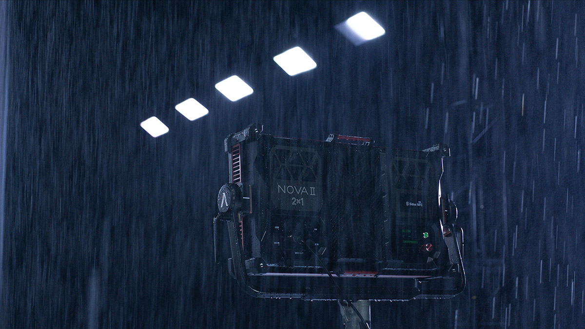 The Aputure Nova II 2×1 panel light is large, measuring 27.2 inches (69.1 cm) wide by 15.3 inches (38.8 cm) high by 5.4 inches (13.6 cm) deep. It’s also heavy at 35.83 pounds (16.25kg) for the lamp head alone without the yoke. The Nova II 2×1 panel features active cooling but keeps fan noise below 40dB even in high-speed mode. Also, the light offers IP65 weather protection so you can keep shooting when conditions turn bad.