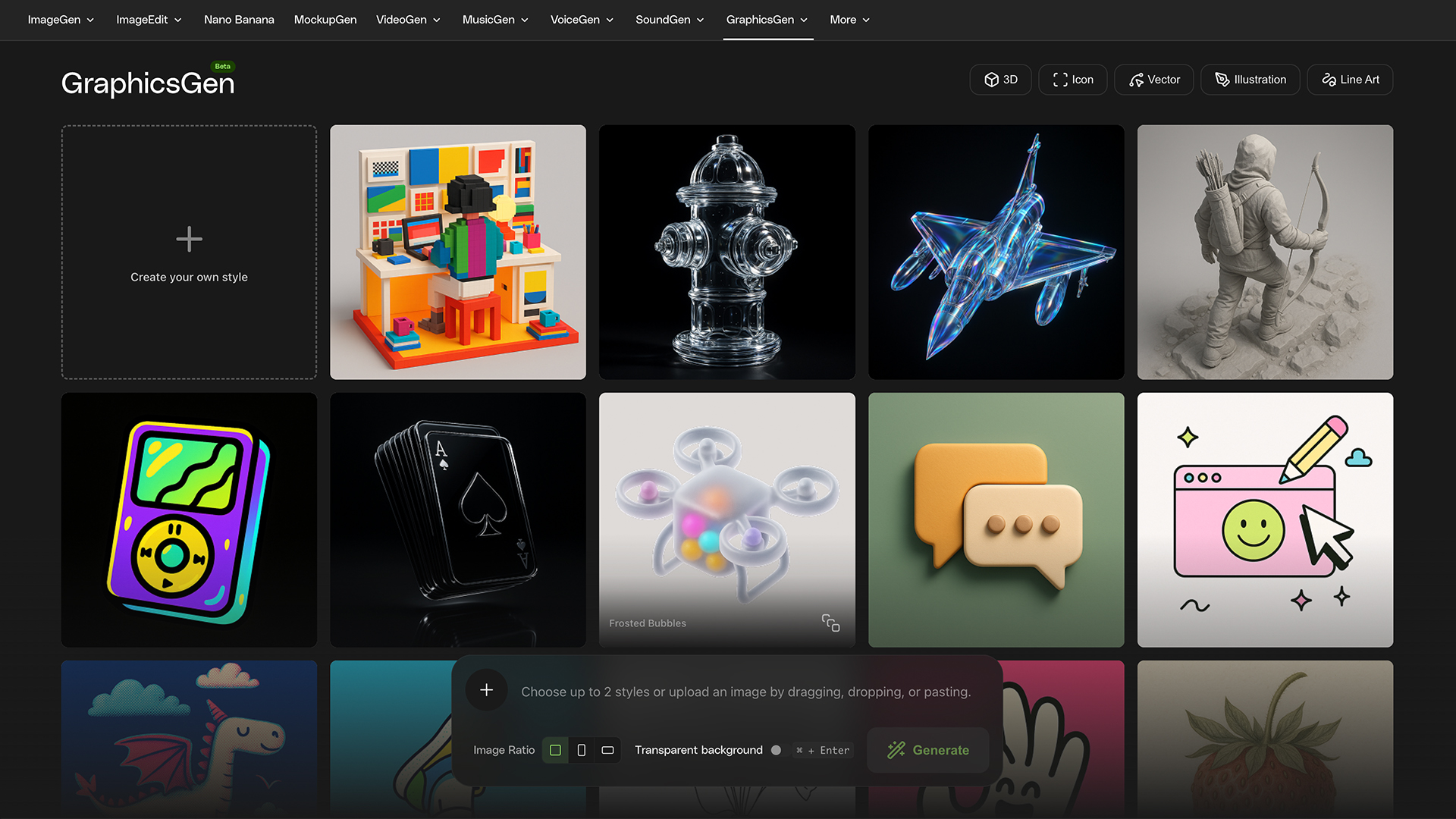 If you are looking for something unique, you can use GraphicsGen, Envato’s new AI-powered graphics tool. GraphicsGen generates production-ready, bespoke icons and illustrations from your text or image prompts. You can choose from over 100 reference styles or upload your own. Envato says that GraphicsGen can generate cohesive image sets that match your exact vision, creating vector graphics, illustrations and icons.