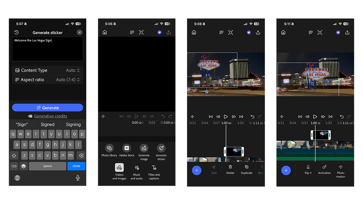 On the video side, you’ll find impressive tools like Image and Video Generation. You can create unique still images with the power of AI, or you can take a still image that you already have and animate it. For example, do you need another moving road shot? Find the still image you took from the front of the car and have AI move it. All without leaving the app.